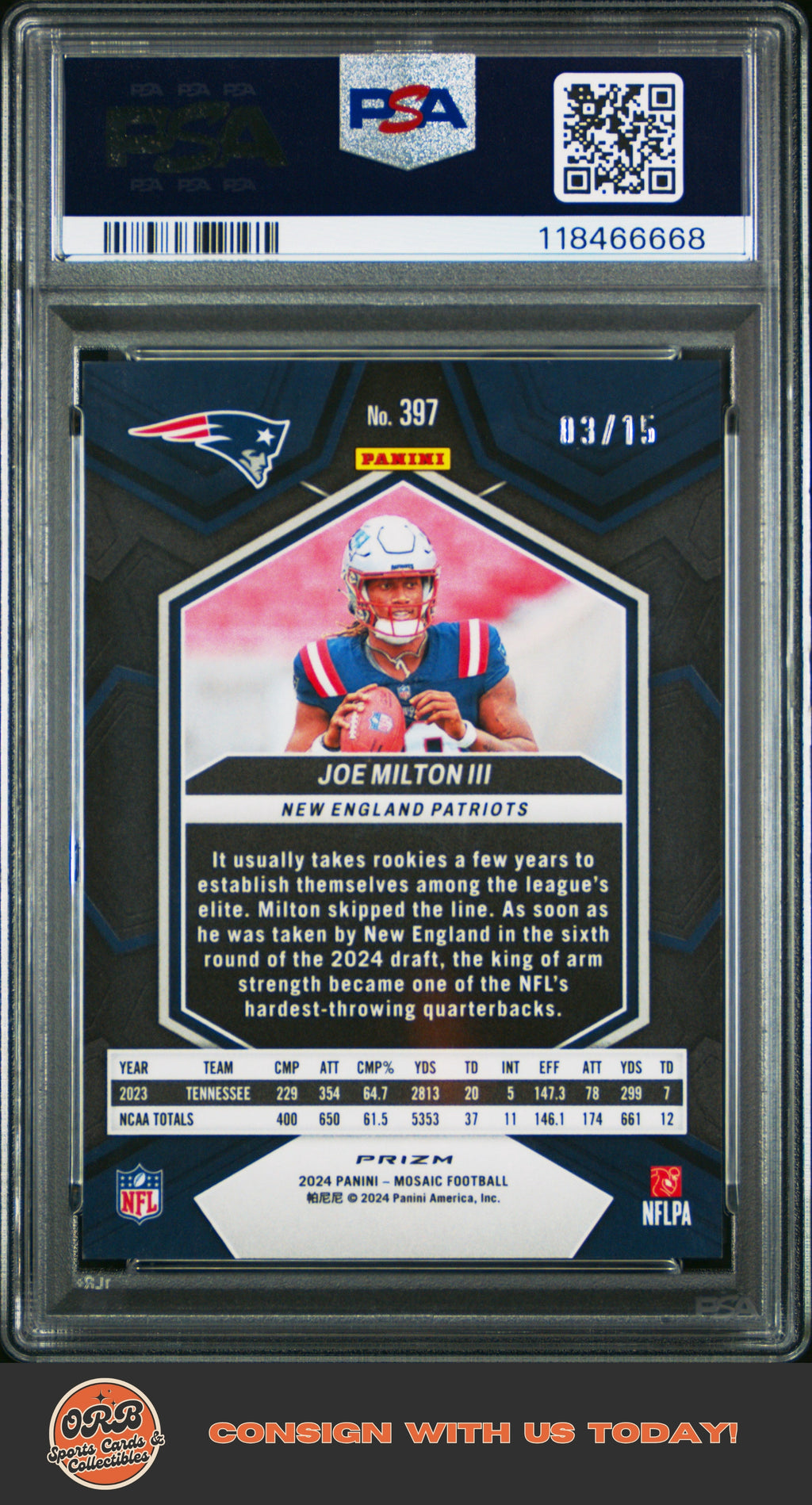 Card Number: 397 Category: Collectible Trading Cards Condition: Mint Set: 2024 Panini Mosaic Type: Sports Trading Card Year: 2024 Grade: PSA 9 Certification #: 118466668