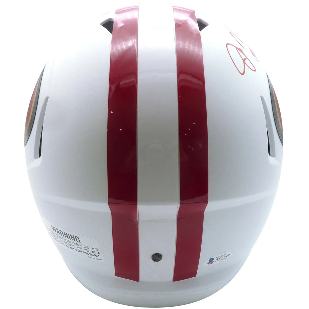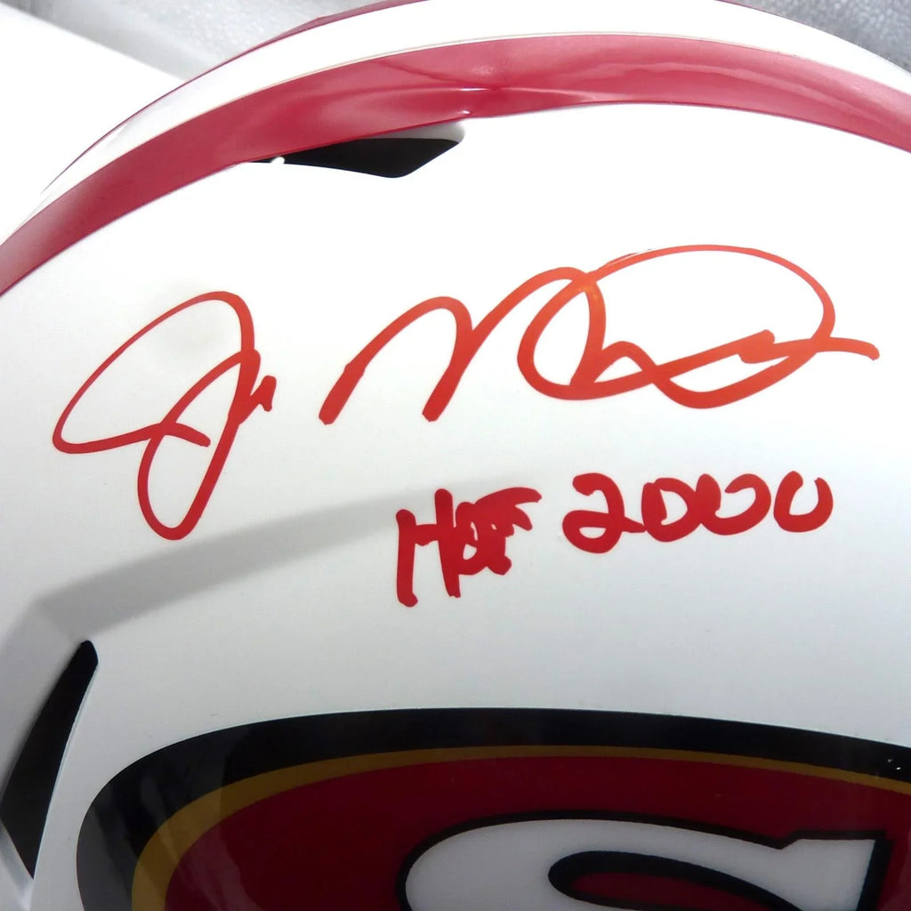 Experience the thrill and legacy of NFL legend Joe Montana with this autographed San Francisco 49ers full-size replica helmet. Complete with a "HOF 2000" inscription, this deluxe helmet is the perfect addition to any fan's collection. Beckett Witness certification guarantees the authenticity of this essential piece of sports memorabilia. Get yours today!