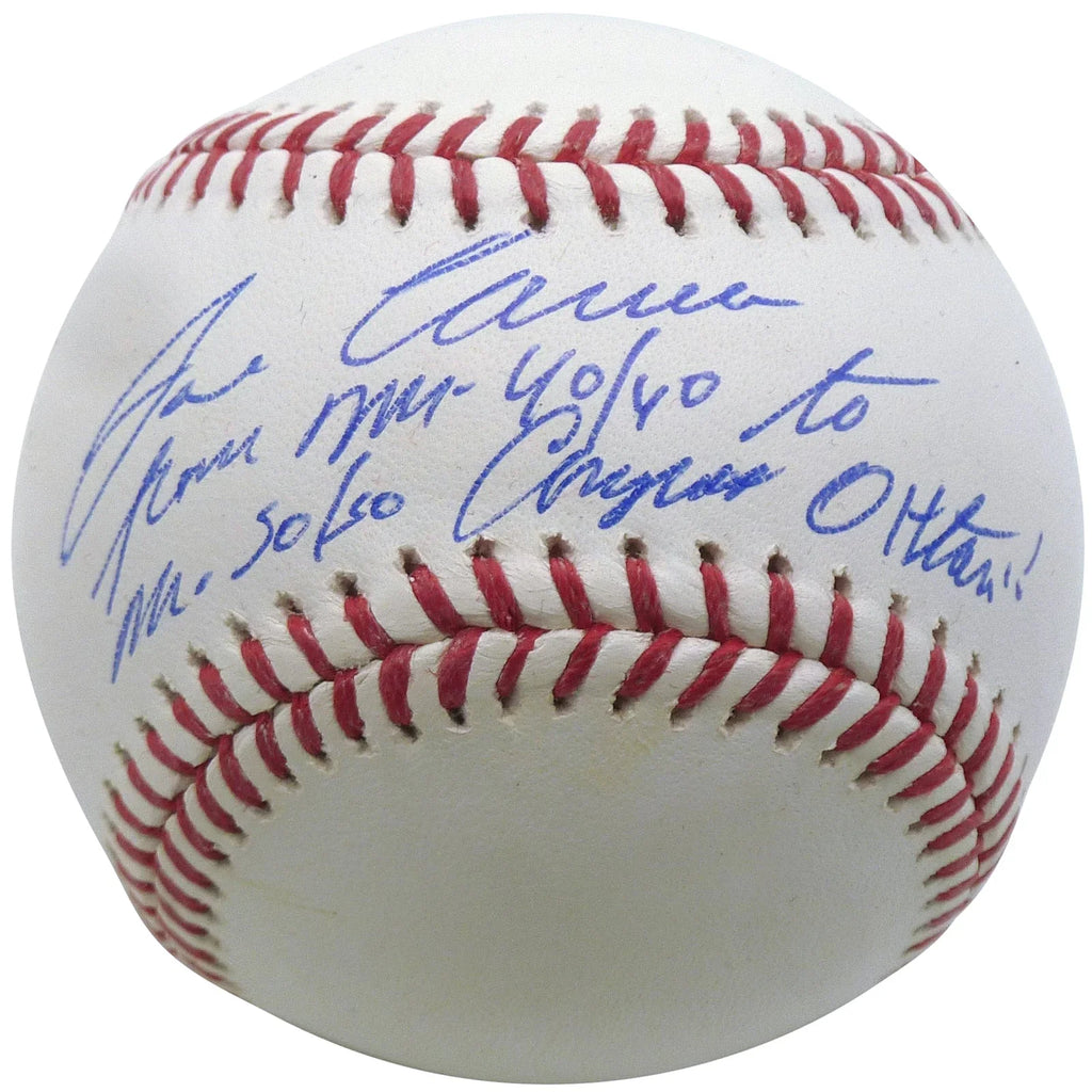 This autographed MLB baseball is a must-have for any fan of the legendary player Jose Canseco. The ball features his signature along with a congratulatory message to rising star Shohei Ohtani. With a certification from JSA, this rare and unique piece is a valuable addition to any collection.