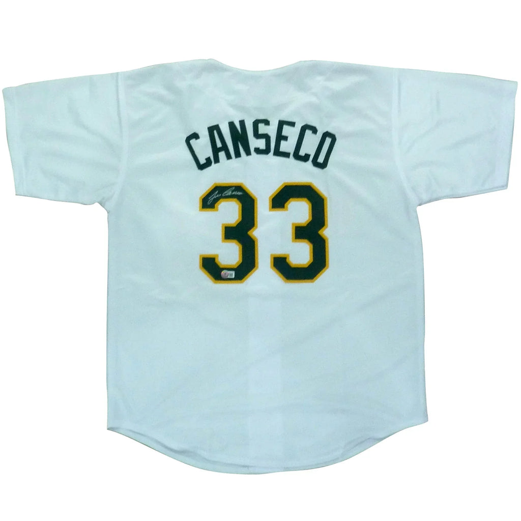 This Jose Canseco autographed Oakland (White #33) custom jersey is a must-have for any baseball fan or collector. This jersey features Canseco's signature and iconic number, adding value and sentiment to any collection. Own a piece of baseball history with this custom jersey!