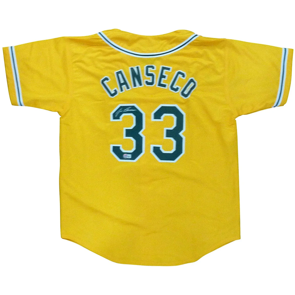 This Jose Canseco Autographed Oakland (Yellow #33) Custom Jersey is the ultimate collectible for any fan of the Oakland Athletics. With a signature from the legendary Jose Canseco, this jersey is a must-have for any true fan. Display it proudly and add it to your collection today.