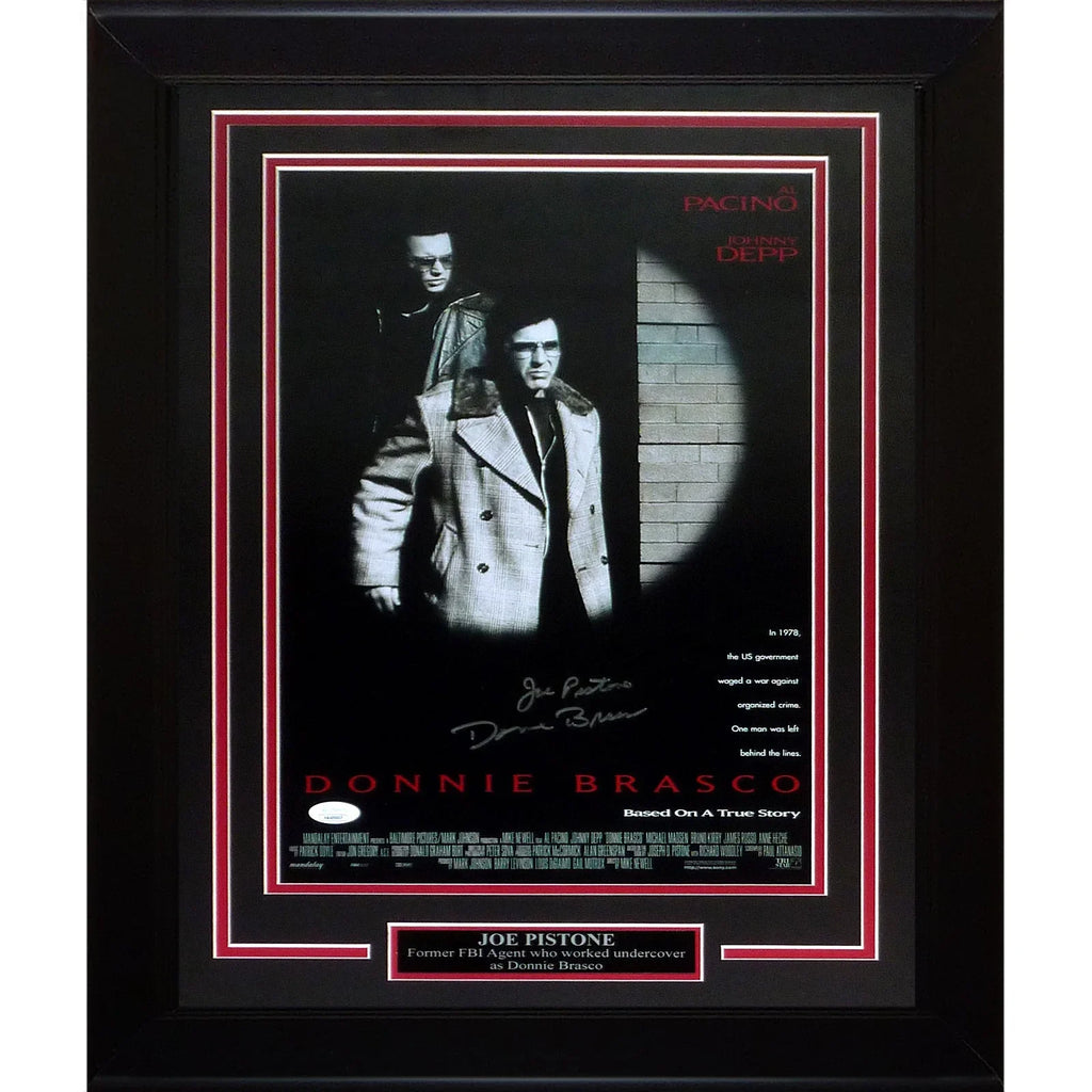 Own a piece of film history and channel your inner Donnie Brasco with this autographed deluxe framed movie poster. Signed by the real Joseph Pistone himself, this 11x17 poster is a must-have for any fan. Authenticated by JSA, this poster is a truly unique and valuable addition to any collection.