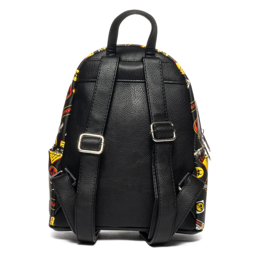 Two of these predators are featured among various warning signs in the all-over print of this bag and with good reason! A velociraptor looms, presumably stalking for prey, while a tyrannosaurus rex roars to make its presence very known—serving as another warning sign of its own. They’re accompanied by signs featured throughout the film, from bio-hazard cautions to a simple but imperative “DANGER” warning. With plenty of room for your essentials, this backpack is the perfect accessory for your daily adventures!