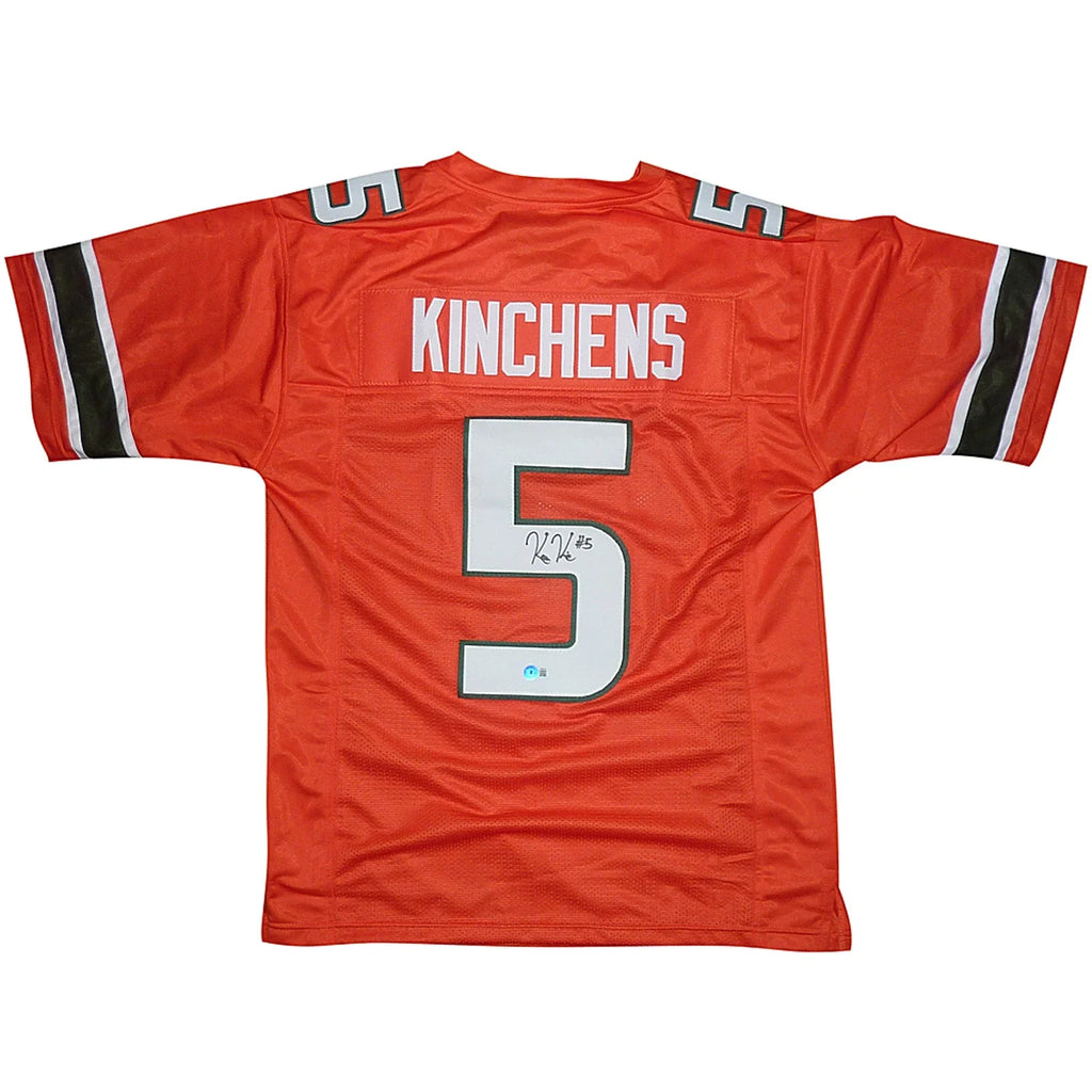 Get your hands on this exclusive Kamren Kinchens autographed Miami jersey! This custom orange #5 jersey is authenticated by JSA, making it a valuable addition to any sports memorabilia collection. Show your support for the team and the player with this unique and certified piece. Limited quantities available!