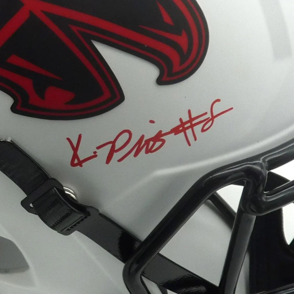 Own a piece of Atlanta Falcons history with this Kyle Pitts autographed full-size replica helmet! This deluxe helmet, featuring the team's striking lunar eclipse alternate design, comes with a certificate of authenticity from Beckett. Perfect for any passionate Falcons fan and collector, this helmet captures the energy and excitement of the game with an autograph from rising star Kyle Pitts.