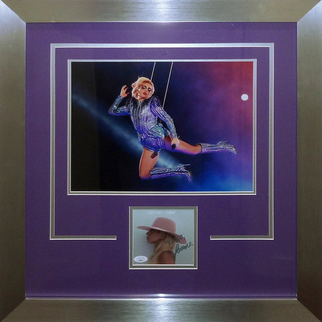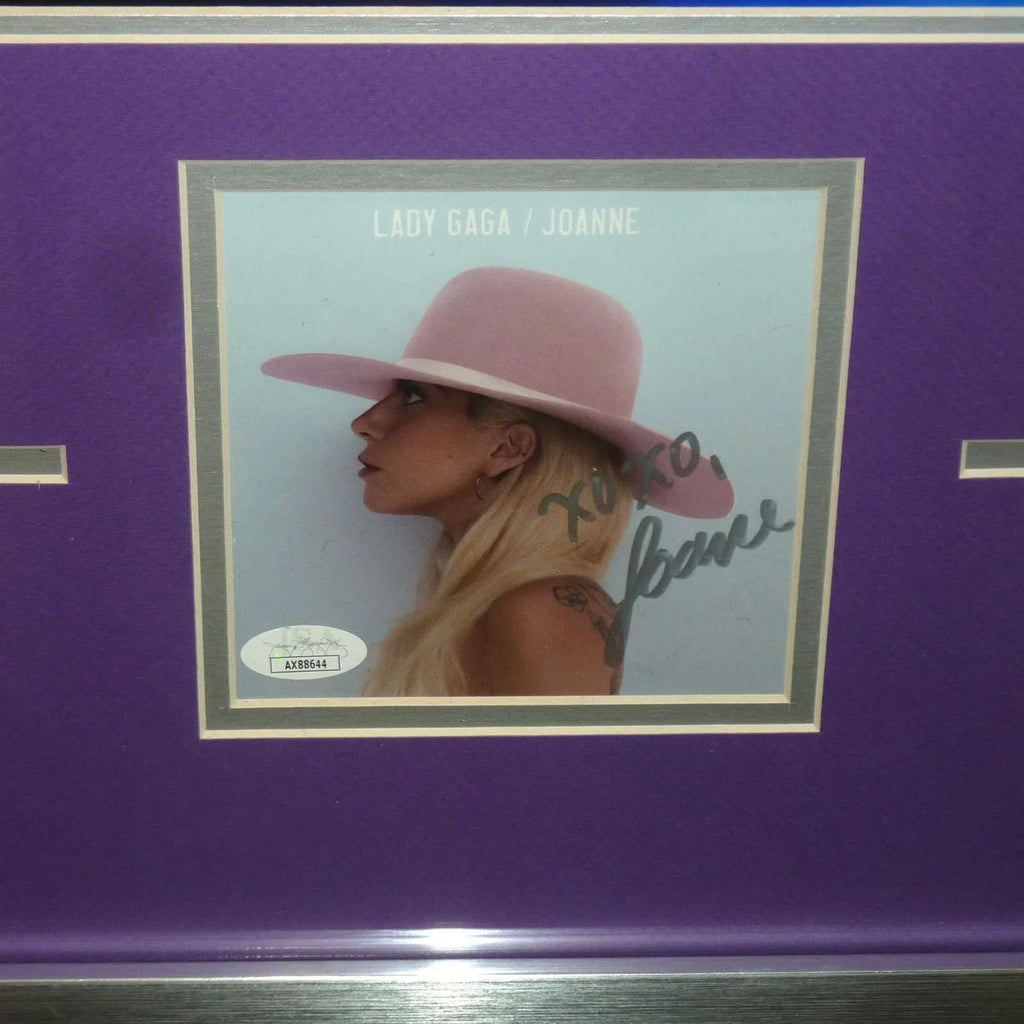 Experience the ultimate Lady Gaga fan package with our deluxe framed Joanne CD piece, personally autographed by the iconic diva herself. This unique piece is authenticated by JSA, adding to its value and collectability. Bring home this exclusive item and showcase your love for Lady Gaga in style!