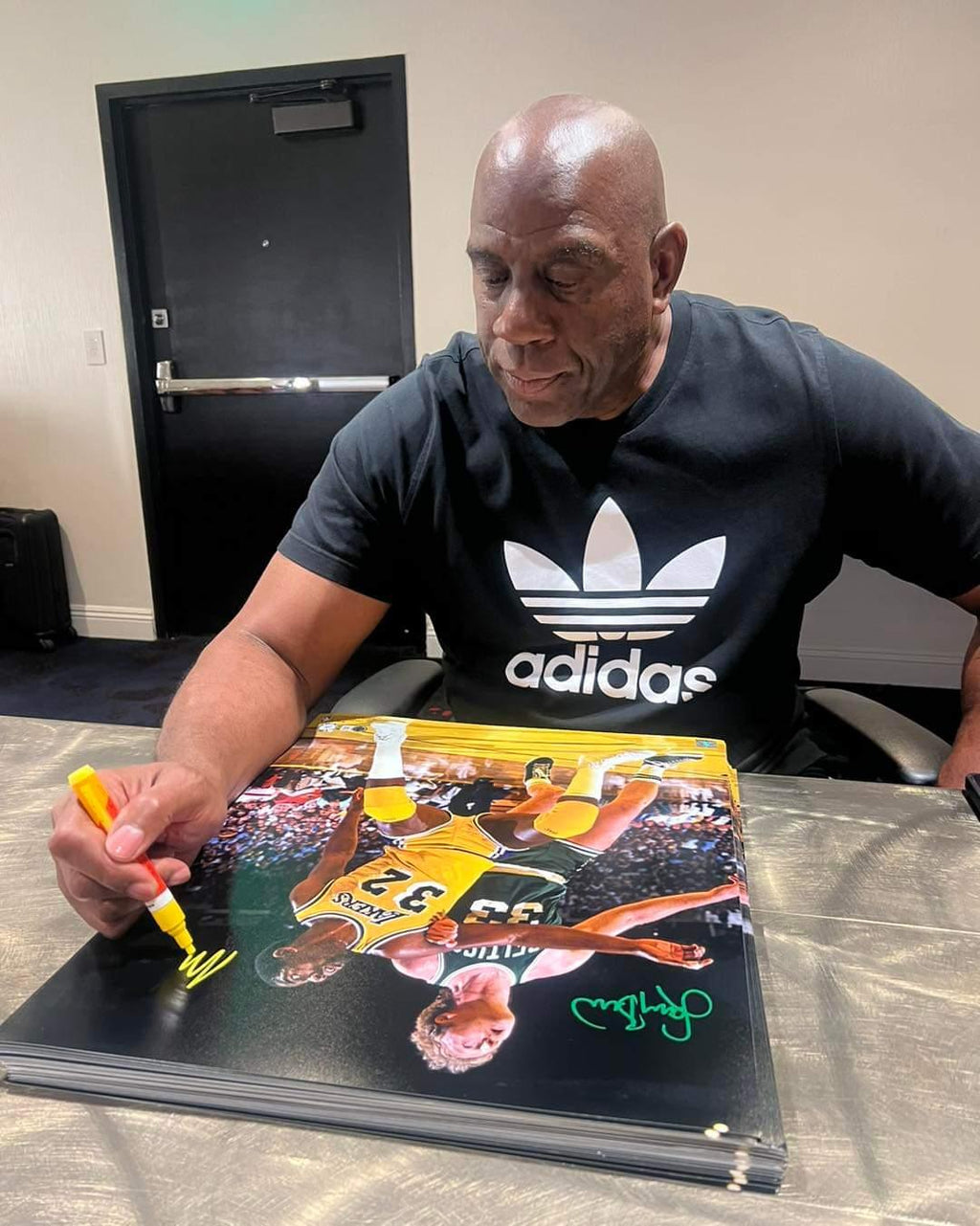 This item was hand signed by both Larry Bird and Magic Johnson at private signings and is accompanied by a Certificate of Authenticity from Palm Beach Autographs and Beckett Witness. A tamper-evident hologram will be affixed to the item.