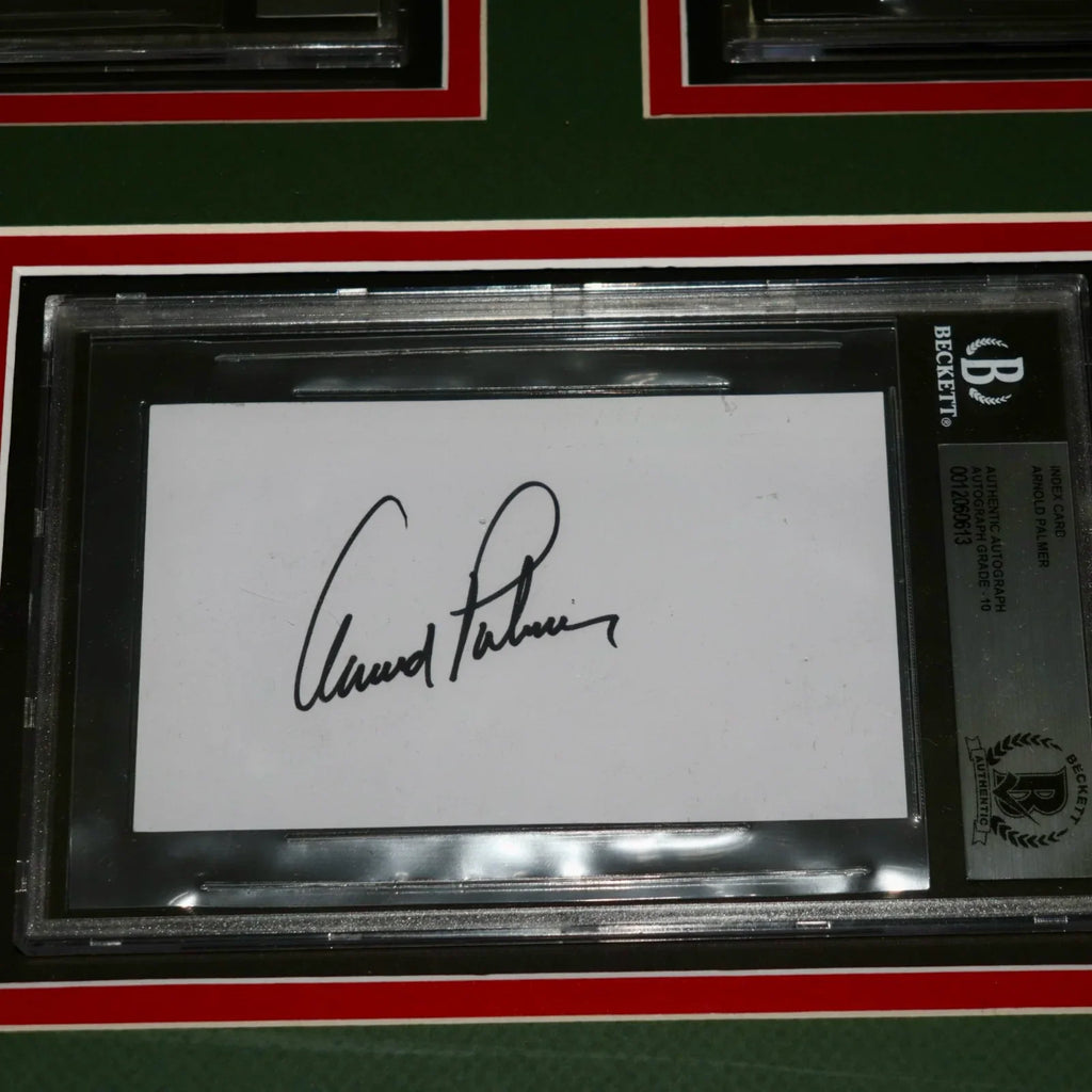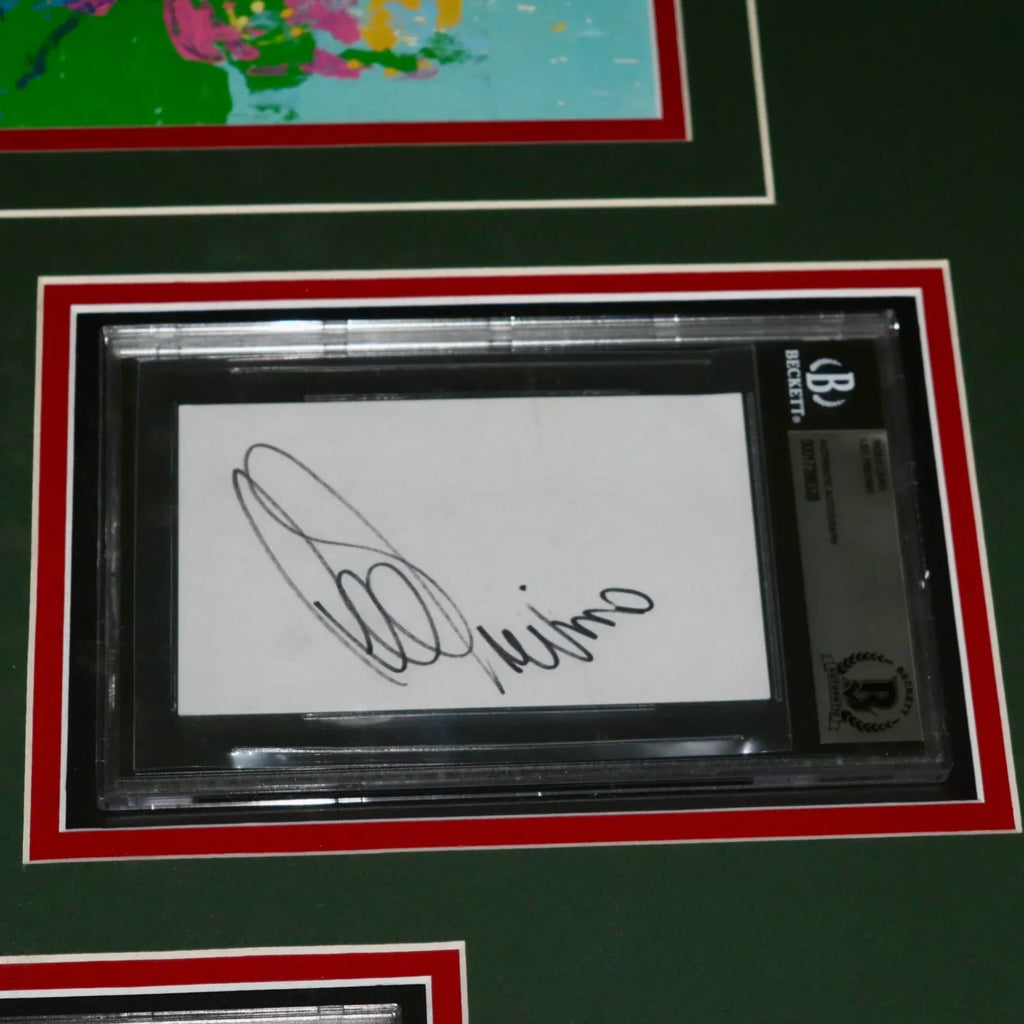 Bring the history and excitement of golf into your home with the LeRoy Neiman "Golf Champions" framed print. This deluxe edition features the signatures of golf legends Sam Snead, Ben Hogan, Gary Player, Lee Trevino, Arnold Palmer, and Jack Nicklaus, all authenticated by Beckett Slab. Show your love for the sport and add a touch of elegance to your decor.