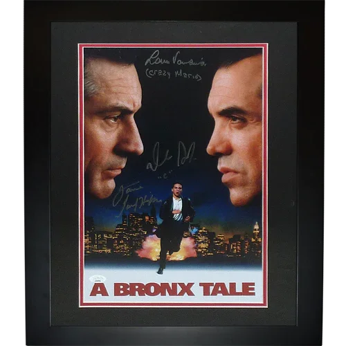 Add a touch of star power to your home with this autographed A Bronx Tale movie poster featuring Lillo Brancato C, Taral Hicks, and Paul Perri. The deluxe frame adds a touch of elegance and the JSA authentication guarantees its authenticity. A perfect addition to any movie lover's collection!