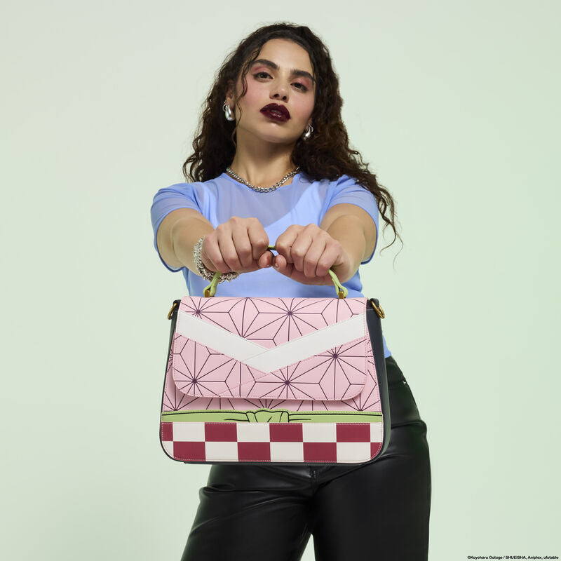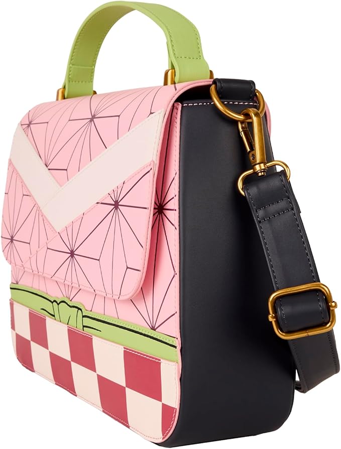 The design of this bag is inspired by Nezuko Kamado's ensemble. You'll find embroidered and debossed details to uplevel the look. The top handle is green to add a fun, coordinating pop of color.
