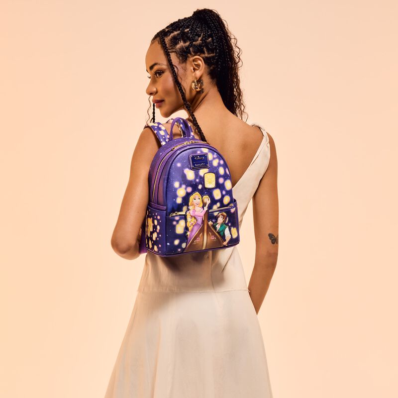 Live your dream with the Tangled Rapunzel & Flynn Rider Lantern Light-Up Mini Backpack! Inspired by the magical floating lantern scene from Disney's Tangled, this enchanting accessory captures the romance and wonder of Rapunzel and Flynn's iconic moment. Designed in Rapunzel’s signature purple and adorned with glowing LED lanterns, this mini backpack brings a bit of fairy tale magic to every outing.