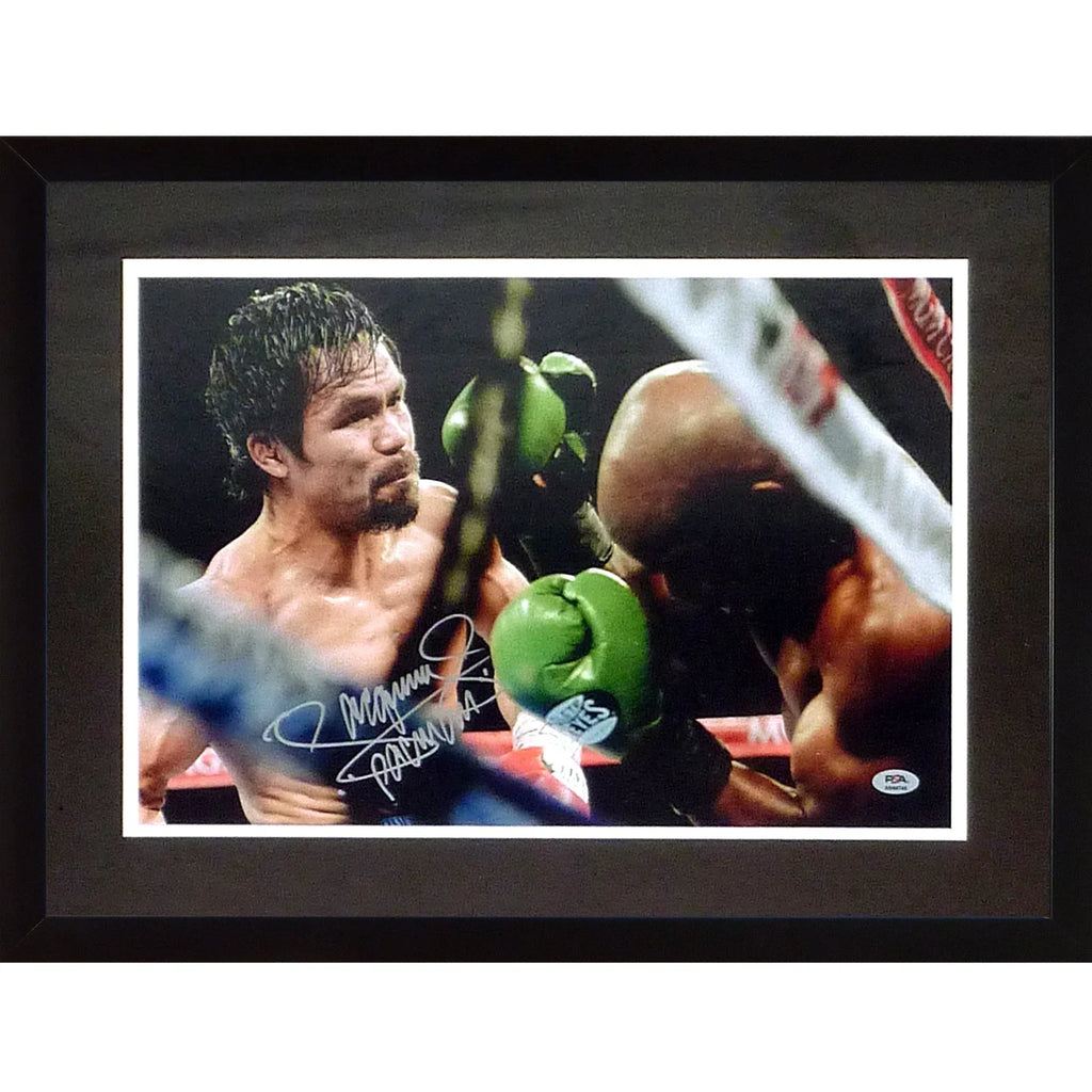 Get ready to feel like a champion with this deluxe framed 12x18 photo of the legendary Manny Pacquiao! This truly special piece includes an authentic autograph from Manny Pacquiao himself, certified by PSADNA. Perfect for any boxing fan, this framed photo will inspire and motivate you to reach new heights!