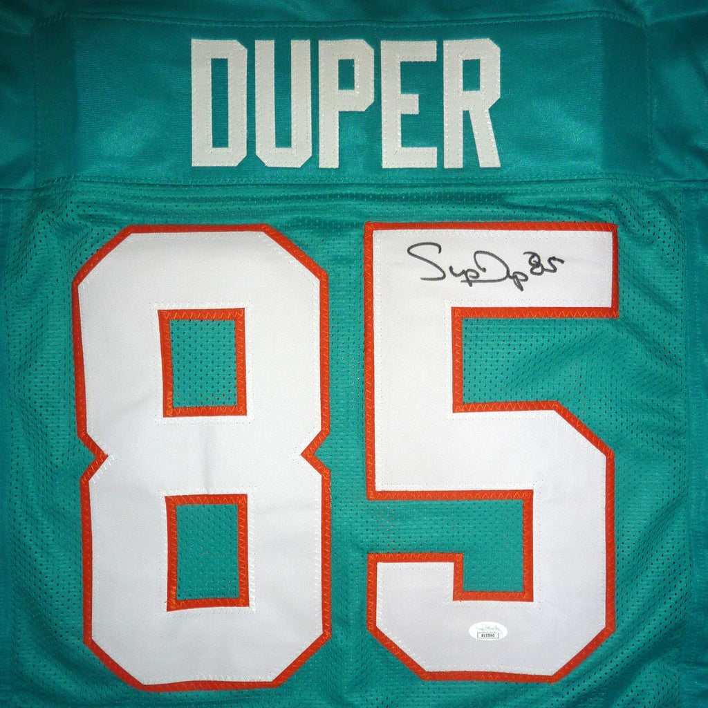 Elevate your Miami Dolphins fan game with this custom Mark Duper autographed jersey! The teal jersey, with his iconic number 85, is personally signed by the legendary player and comes with a certificate of authenticity from JSA. Own a piece of Dolphins history and show off your team pride in style!