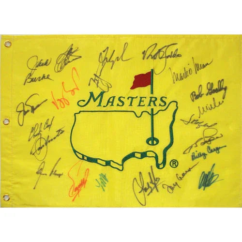 This limited-edition Masters Golf Pin Flag has been personally signed by not one, not two, but 21 former champions! A must-have for any golf enthusiast, this flag features the autographs of 21 legendary golfers, making it a unique and valuable addition to any collection. Don't miss out on this incredible opportunity to own a piece of golf history!