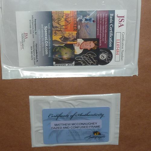 Own a piece of movie history with the Matthew McConaughey Autographed Dazed and Confused Alright, Alright, Alright Deluxe Framed 12x18 Poster Piece! This authenticated item captures the iconic quote and comes with a JSA certificate for added value. Perfect for any collector or fan of the film.