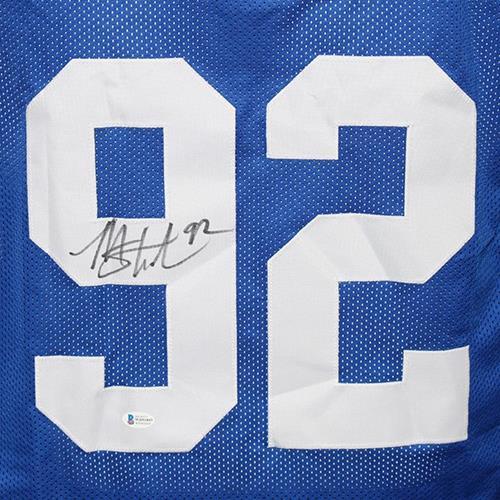 Own a piece of NFL history with this Michael Strahan Autographed New York Giants Custom Jersey! Display it in your fan cave or office to show off your team pride. This jersey, signed by the Giants legend himself, is certified by Beckett for ultimate assurance and value.