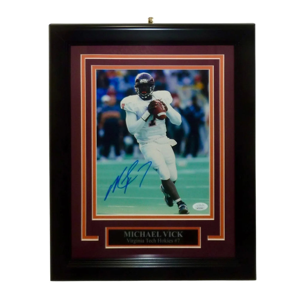 Celebrate the legendary Michael Vick with our deluxe framed 8x10 photo! This piece of Virginia Tech Hokies memorabilia features an authentic JSA autograph, making it a valuable addition to any collection. Display it proudly and relive the glory days of one of the greatest quarterbacks in college football history.