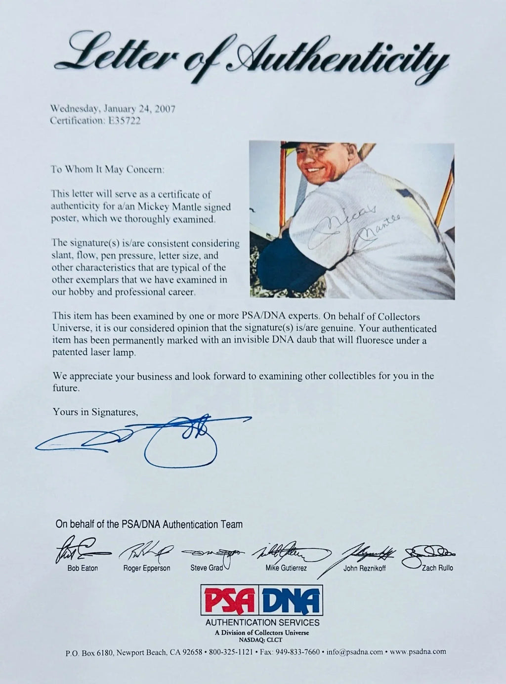 Relive the glory days of baseball with this limited edition deluxe framed photograph featuring a JSA authenticated autograph from a legendary player, Mickey Mantle. Proudly display this authenticated piece in your home or office, knowing that you are a part of baseball history. The perfect addition to any sports fan's collection, this item is sure to inspire strong emotions and bring back cherished memories. Don't miss your chance to own a one-of-a-kind piece of iconic sports memorabilia!