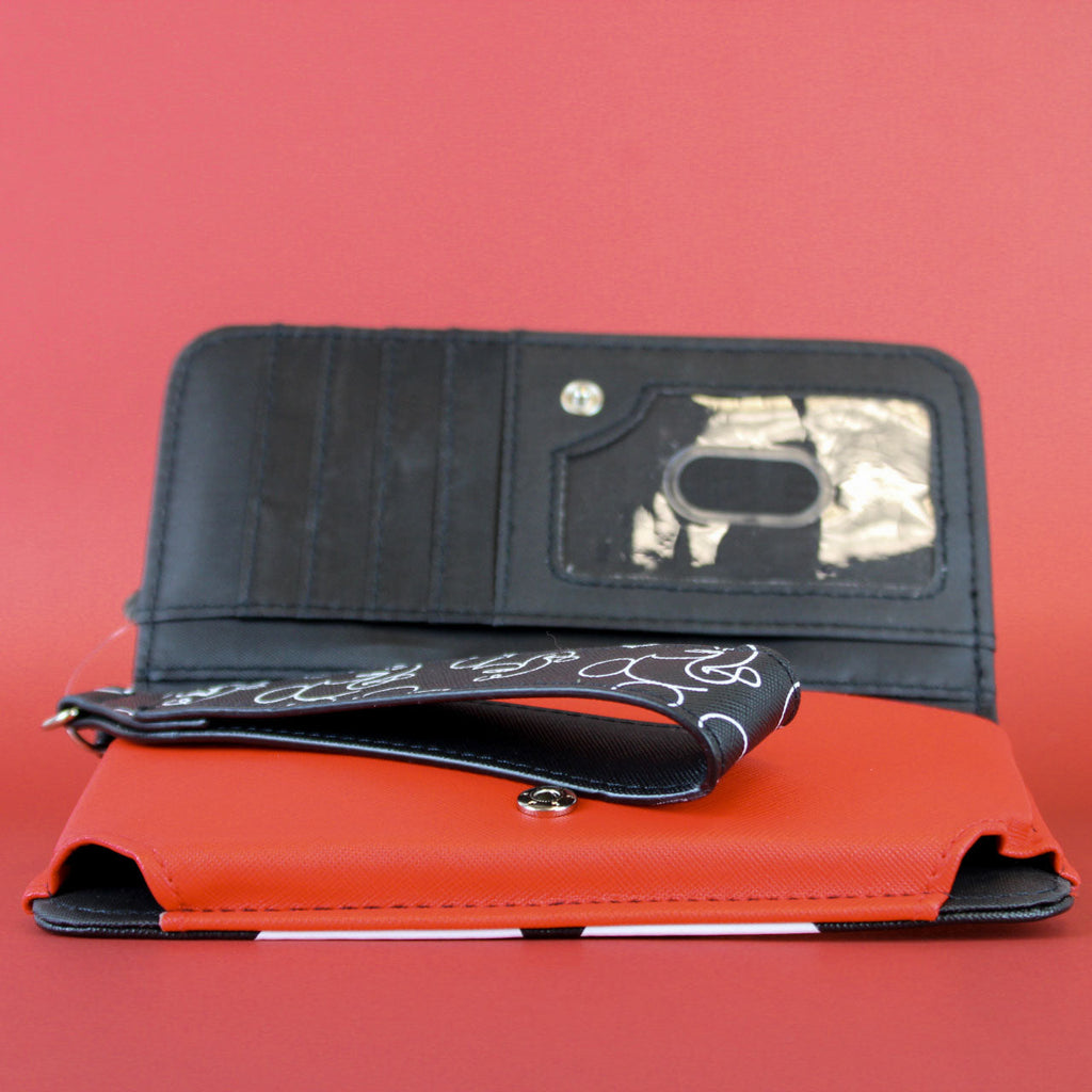Gosh! You'll have a hot dog day with this classic Mickey Mouse inspired clutch wallet! This wallet features a large tech compartment for a phone, a zippered coin purse back pocket, a large interior slip pocket, and enough card slots to organize all the essentials! The removable wristlet strap allows you to carry it with ease as a clutch wallet or compact mini purse.