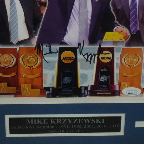 Celebrate the legendary coach, Mike Krzyzewski, with this deluxe framed 8x10 promo photo from the Duke Blue Devils. The autographed photo has been authenticated by JSA, ensuring its authenticity. A perfect addition to any Duke fan's collection.
