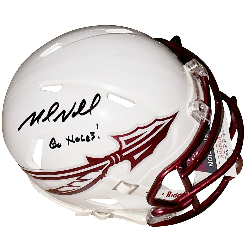 Elevate your Florida State pride with this autographed mini helmet from head coach Mike Norvell. The Florida State FSU Seminoles design, known as "White Lightning" is now signed and authenticated by JSA. Show off your love for the Noles and add this unique piece to your collection.
