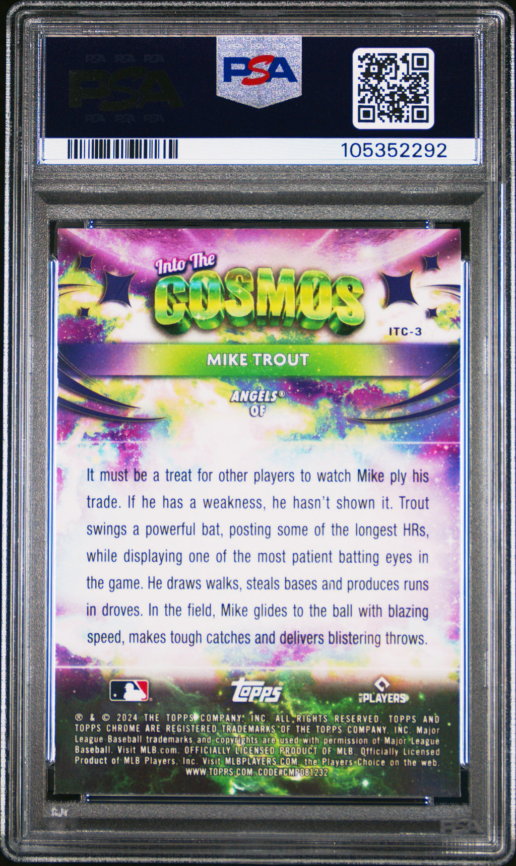 Card Number: 3 Category: Collectible Trading Cards Condition: Gem Mint Set: 2024 Topps Chrome Cosmic Into The Cosmos Type: Sports Trading Card Year: 2024 Grade: PSA 10 Certification #: 105352292