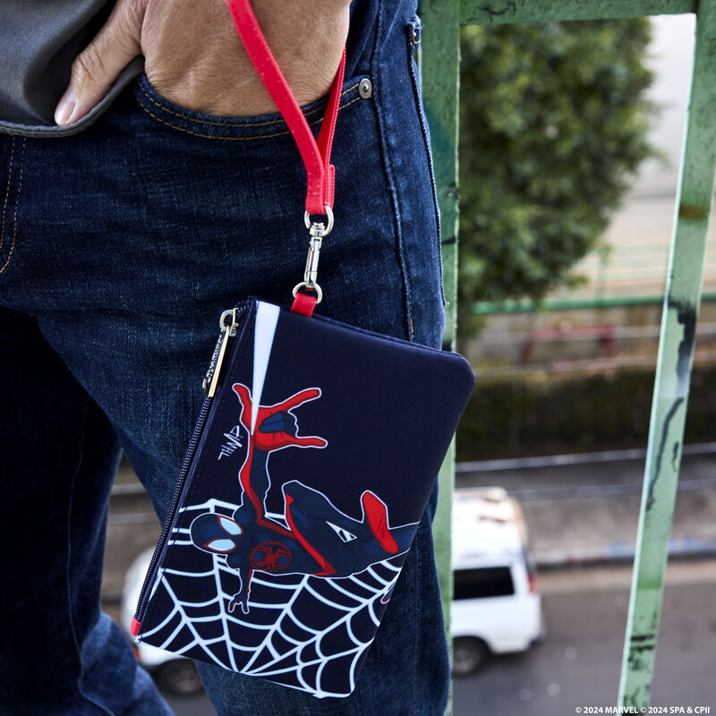 Let’s do this one more time! Bitten by a radioactive spider, Miles Morales takes the role of Spider-Man on the Loungefly Spider-Verse Miles Morales Nylon Wristlet Wallet. On the front, a graffiti-style spider symbol recreates the look of Miles’ hero suit. On the back, Miles swings from a spiderweb while using his powers. Unzip the wallet to reveal four slots for holding cards or ID. This accessory makes a heroic addition to your next mission and will keep your belongings safe on your interdimensional travels.
