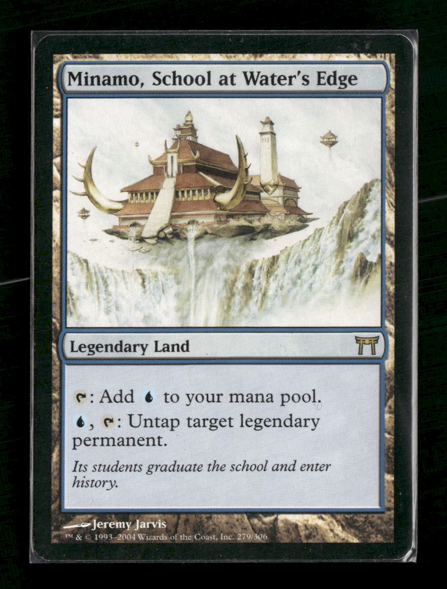Card Number: 279 Category: Collectible Trading Cards Condition: Near mint or better Player/Character: Minamo, School at Water's Edge Set: Champions of Kamigawa Type: Collectible Card Game Year: 2004 Game: MAGIC_THE_GATHERING Rarity: Rare