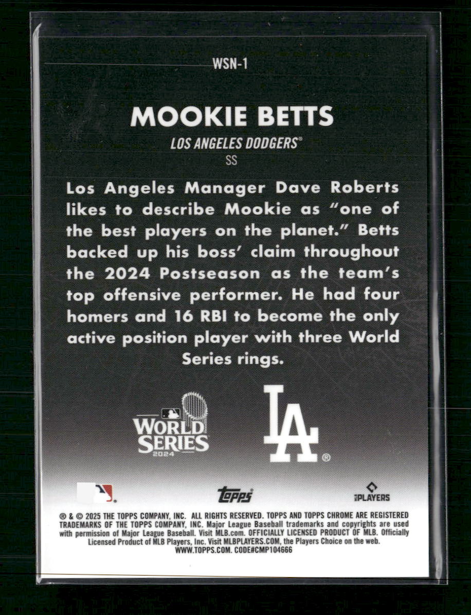 Card Number: WSN-1 Category: Collectible Trading Cards Condition: Near mint or better Set: 2025 Topps Chrome Type: Sports Trading Card Year: 2025