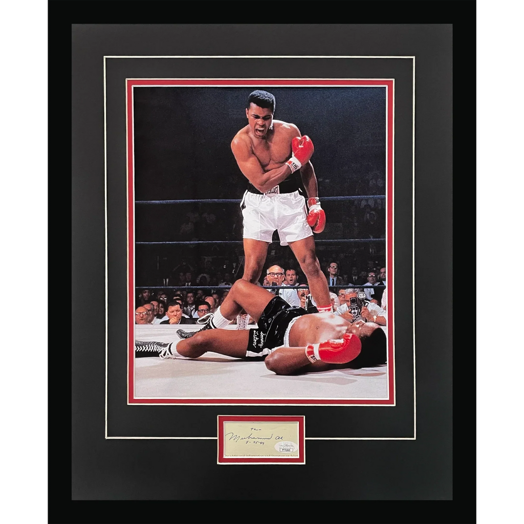 Experience the power and legacy of Muhammad Ali with this deluxe framed 11x14 poster piece. The iconic image of Ali standing over Liston is brought to life with an authentic autograph and JSA Letter of Authenticity. Hang this piece in your home or office and be inspired by the greatest boxer of all time!