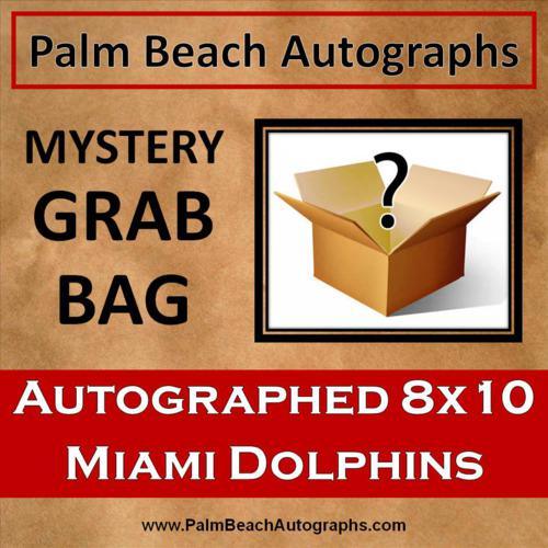 We introduced our "Mystery Grab Bag" program in our retail stores in 2012 and the response has been overwhelming. Due to popular demand we are now offering these items online. Each Grab Bag is sealed and will contain one autographed 8x10 Photo of a past or present Miami Dolphins NFL player or coach. It will be accompanied by a Palm Beach Autographs hologram and Certificate of Authenticity. For in-store purchases you will be able to select your own Grab bag, but for online purchases it will be selected at random by a member of our staff. No returns or exchanges on Grab Bags. Good luck!!