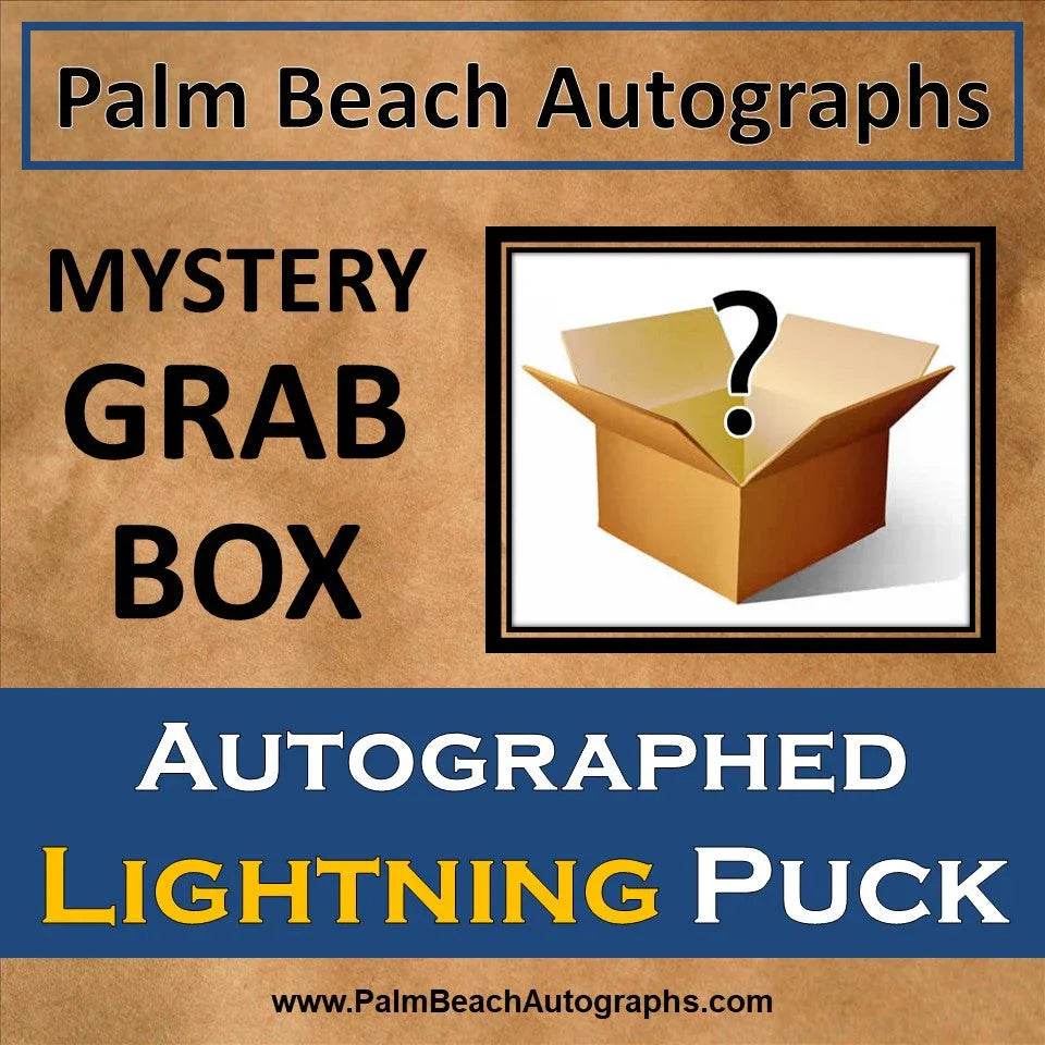 Grand Prize: Andrei Vasilevskiy (1:25 Chance). Other star players included: Victor Hedman, Vinny Lecavalier, Yanni Gourde, Nikita Kucherov, Brayden Point and many more. We introduced our "Mystery Grab Bag" program in our retail stores in 2012 and the response has been overwhelming. Due to popular demand, we are now offering these items online. Each Grab Box is sealed and will contain one autographed Hockey puck of a past or present Lightning player. It will be accompanied by a Palm Beach Autographs hologram and Certificate of Authenticity. For in-store purchases you will be able to select your own Grab bag, but for online purchases it will be selected at random by a member of our staff. No returns or exchanges on Grab Bags. Good luck!!