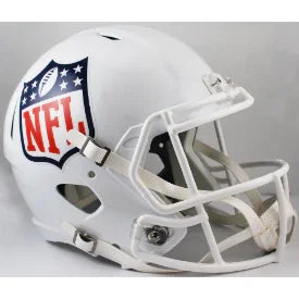 NFL Shield Full Size Speed Replica NFL Helmet by Riddell. This full size NFL Shield helmet is designed with a non-wear plate and molded foam jaw pads. a steel polyvinyl-coated face mask, 4-pt chin strap, and elliptical air vents. NFL Team name on back bumper (except Chiefs, Steelers and Giants). The officially licensed NFL helmet is great for autographs and features NFL Shield team logo decals on both sides. The striking shape of the future. NFL NFL Shield Replica Speed helmet size medium measures: 12.75"(L), 9.25"(W), 9.75"(H). NFL NFL Shield Full Size Speed Replica Helmet. (NOT FOR WEARING)