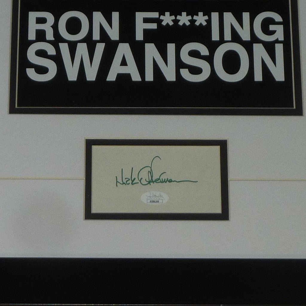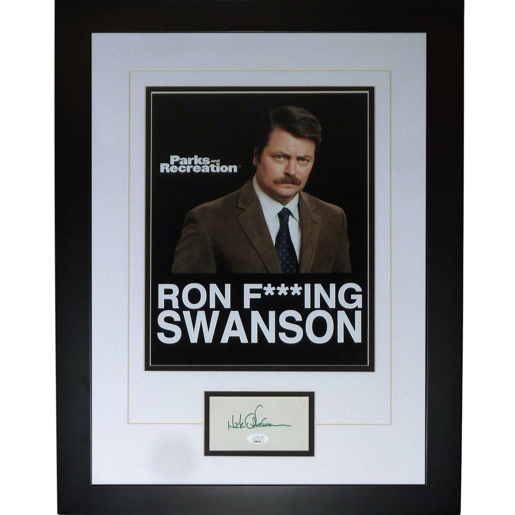 Celebrate your love for Parks and Recreation with this exclusive Ron Swanson framed piece, autographed by the incomparable Nick Offerman. This deluxe piece will be the envy of all your friends and a treasured addition to any fan's collection. Guaranteed authentic by JSA!
