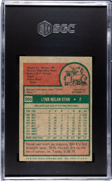 Card Number: 500 Category: Collectible Trading Cards Condition: Near Mint Set: 1975 Topps Mini Type: Sports Trading Card Year: 1975 Grade: SGC 7 Certification #: 2489361
