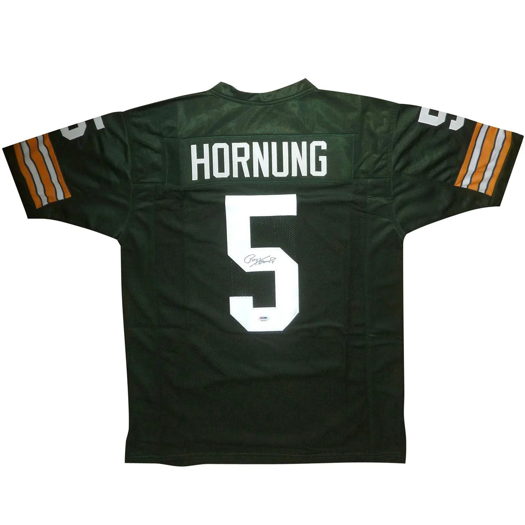Show your team pride with this Paul Hornung Autographed Green Bay Packers Custom Jersey! Featuring Hornung's signature and the iconic green and gold colors of the Packers, this jersey is the perfect addition to any fan's collection. With a Certificate of Authenticity from JSA, you can be sure of the jersey's quality and value.