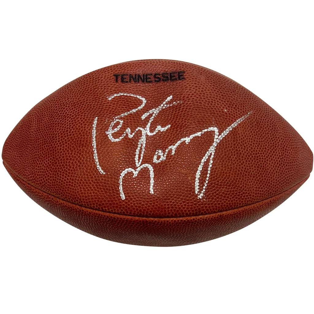 Elevate your fan experience to new heights with this authentic autographed football from the University of Tennessee Vols, signed by the renowned Peyton Manning. A must-have for any avid collector or for displaying in your home, this piece of history is the perfect way to show your team pride and passion!