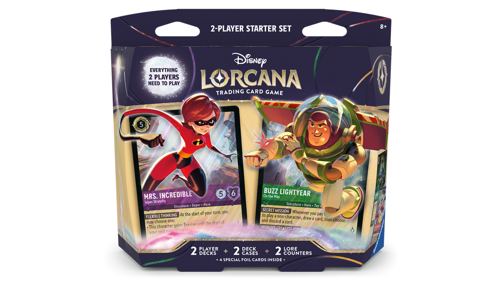 Jump straight into Disney Lorcana with two ready-to-play preconstructed decks! Featuring Elastigirl (The Incredibles) and Buzz Lightyear (Toy Story), this set is perfect for new players or teaching a friend.
