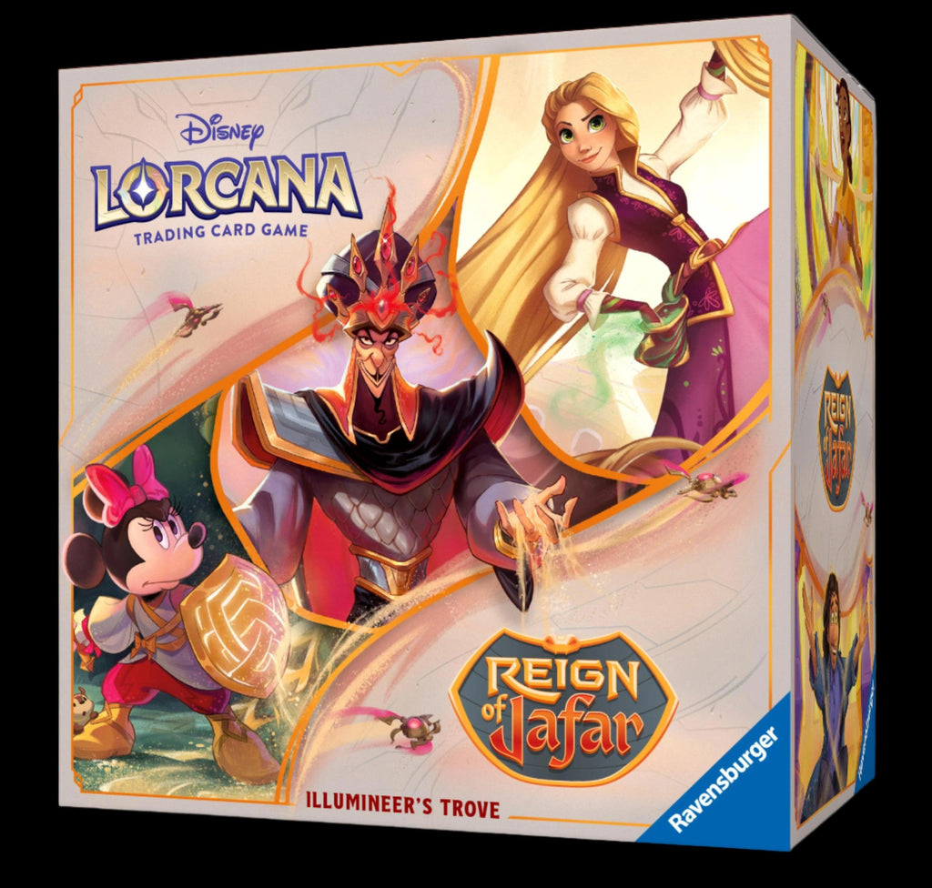 The ultimate treasure for both collectors and players, the Illumineer's Trove includes a full-art storage box with 6 character-themed card dividers to keep your Disney Lorcana TCG cards safe and organized by ink.