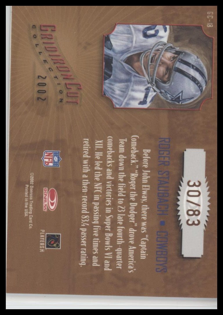 Card Number: GC-18 Category: Collectible Trading Cards Condition: Near mint or better Set: 2002 Donruss Gridiron Kings Type: Sports Trading Card Year: 2002