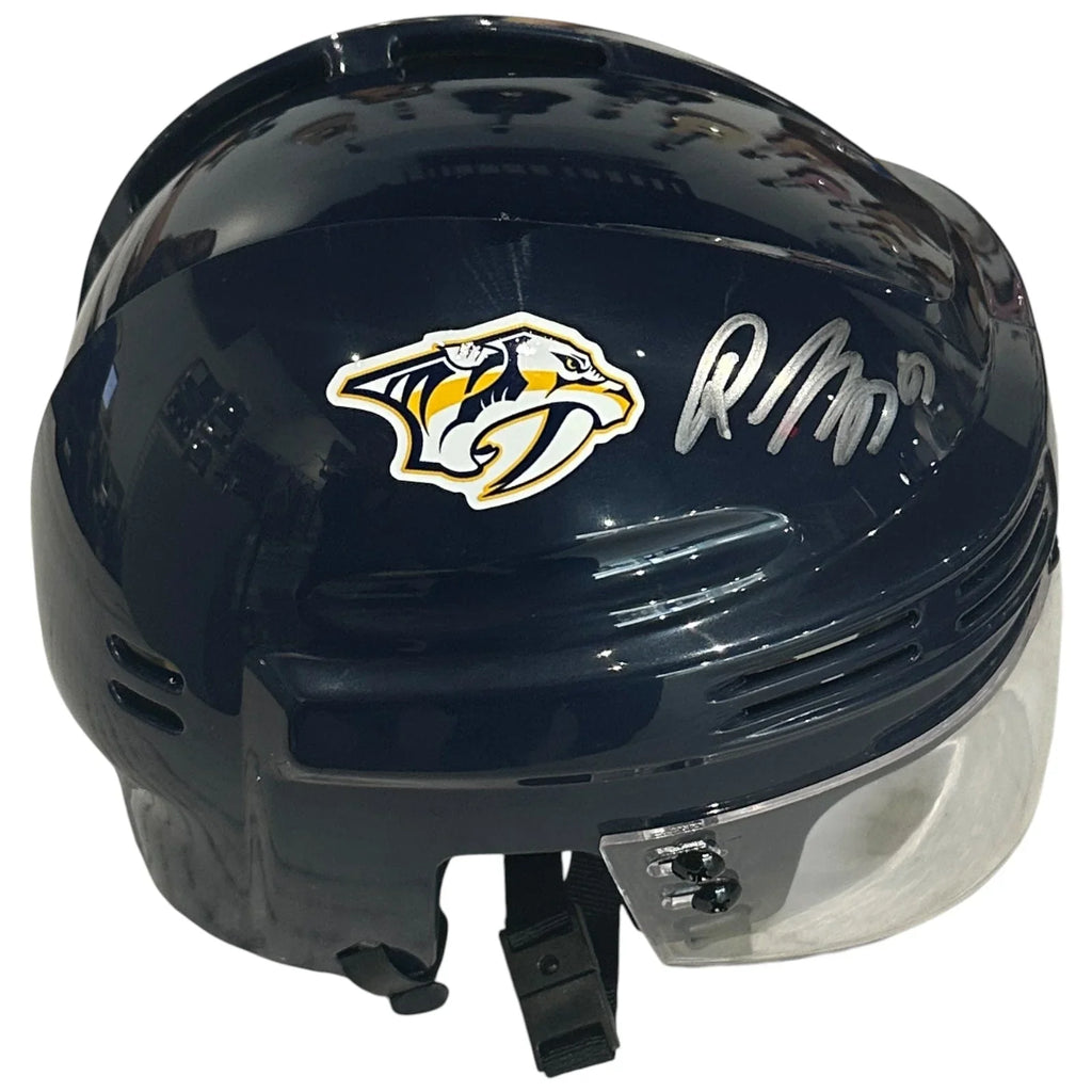 Show off your team pride with this autographed Nashville Predators mini hockey helmet signed by captain Roman Josi. A must-have for any fan, this mini helmet, authenticated by JSA, is a unique and valuable collectible that will make a great addition to your sports memorabilia collection.
