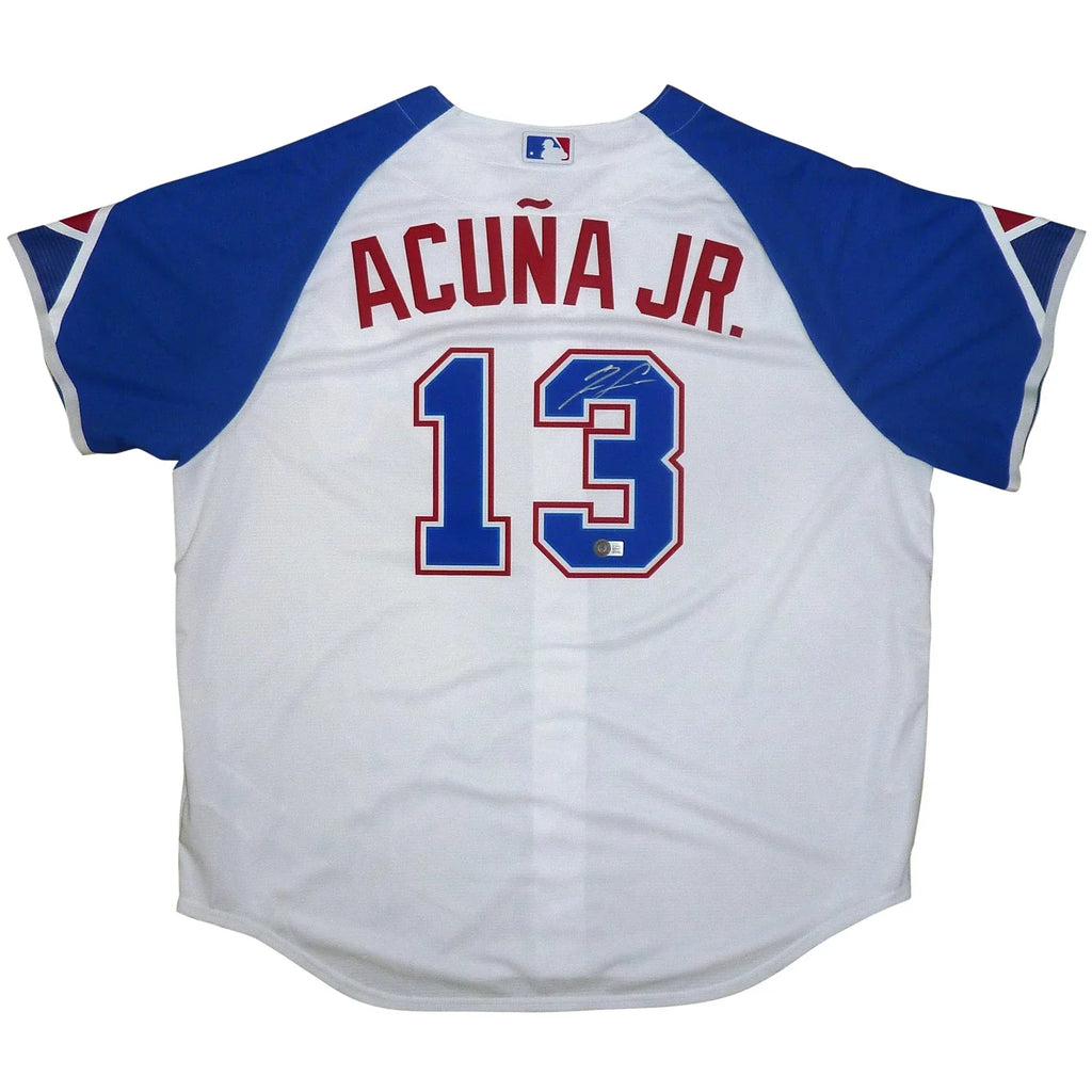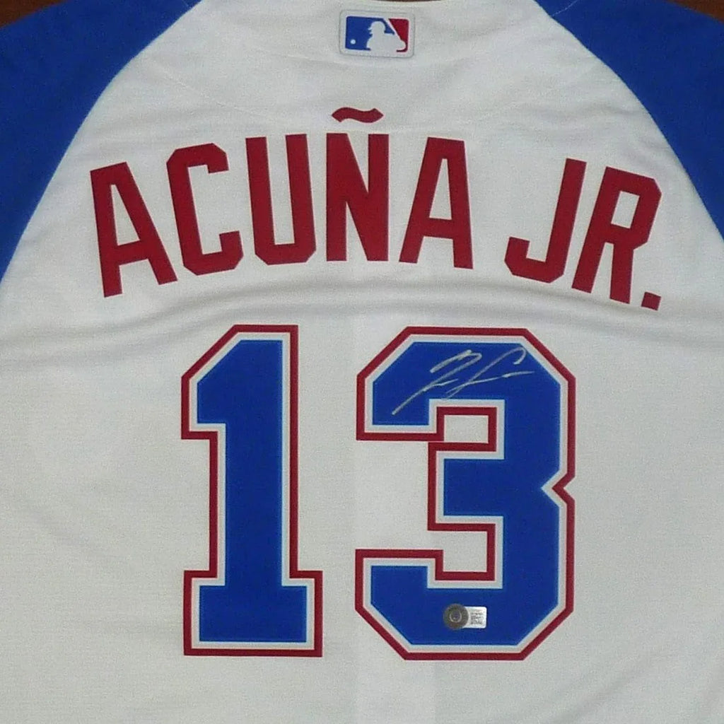Own a piece of Atlanta Braves history with this autographed Ronald Acuna Jr. throwback jersey! Made by Nike for the City Connect collection, this #13 jersey is authenticated by JSA for ultimate collectability. Show off your team spirit and add value to your collection with this unique item.