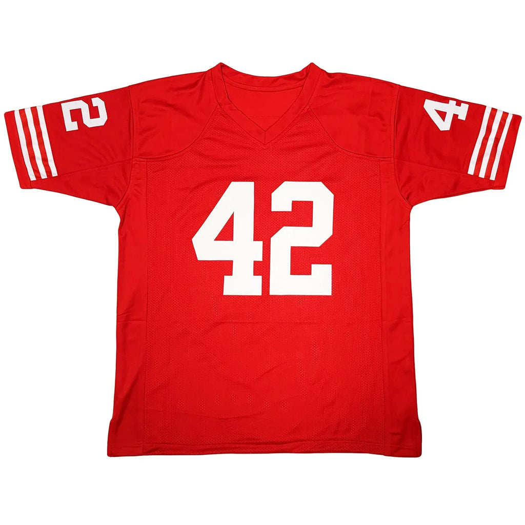 Own a piece of football history with this Ronnie Lott signed San Francisco custom jersey. The iconic red jersey, complete with Lott's signature and Beckett authentication, is the perfect addition to any fan's collection. Show your passion for the game with this unique piece of memorabilia!
