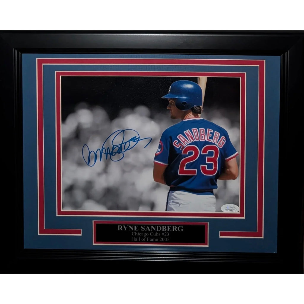 Own a piece of baseball history with this deluxe framed 8x10 photo of Ryne Sandberg in a classic Chicago Cubs pose! This autographed photo is authenticated by JSA, ensuring its value and authenticity. Perfect for any baseball fan or collector.