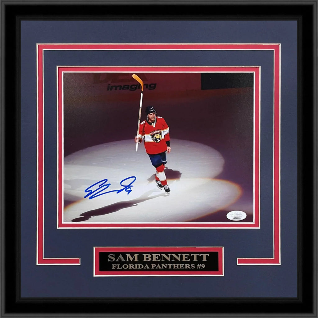 Celebrate your love for hockey and the Florida Panthers with this deluxe framed 8x10 photo signed by none other than Sam Bennett himself! This high-quality collectible is the perfect addition to any fan's memorabilia collection and comes with JSA authentication. Show off your team pride and support your favorite player with this autographed piece.