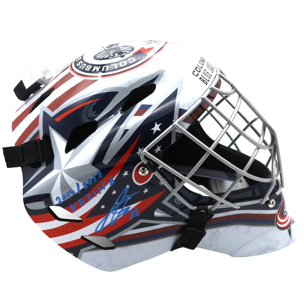 Show off your love for the Columbus Blue Jackets with this autographed goalie mask from champion Sergei Bobrovsky! With a special inscription commemorating his 2 Vezina Trophy wins and JSA certification, this collectible is a must-have for any fan. Protect your goal like a true champion and own a piece of history today!