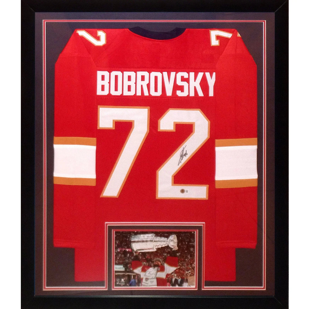 Celebrate your love for the game with this autographed Sergei Bobrovsky Florida jersey! A must-have for any fan, this framed jersey is authenticated by Beckett and proudly displays Bobrovsky's iconic red number 72. Perfect for display in any home or office, this jersey is a true collector's item.
