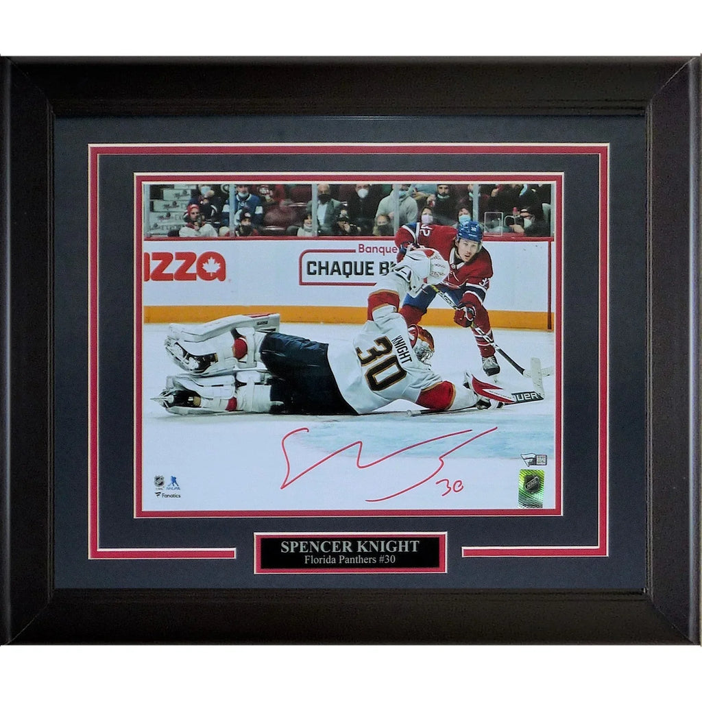Own a piece of history with this Spencer Knight autographed Florida Panthers deluxe framed 11x14 photo! This unique item is authenticated by Fanatics and showcases Knight's skilled stick save. Add it to your collection and feel the thrill of holding a piece of the game in your hands!
