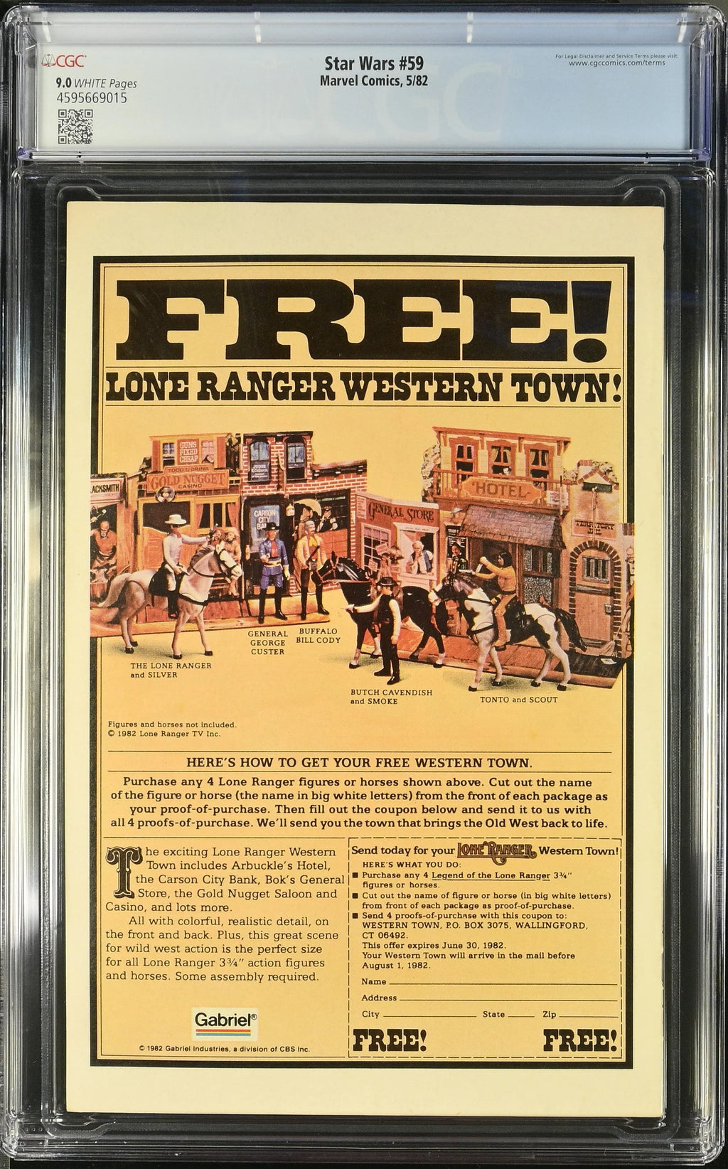 Star Wars #59 from 5/82 offers a glimpse into the era's iconic storytelling. Featuring 1st appearance of orion ferret., this issue is a must-have for collectors. Add this CGC 9 graded comic to your collection today!