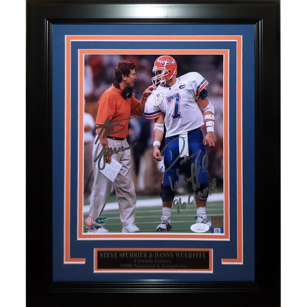 Celebrate the legendary Florida Gators with this autographed photo of Steve Spurrier and Danny Wuerffel! This deluxe framed 8x10 photo captures the excitement of the Sugar Bowl game and is certified by JSA. Perfect for any Gators fan looking to add a piece of history to their collection!